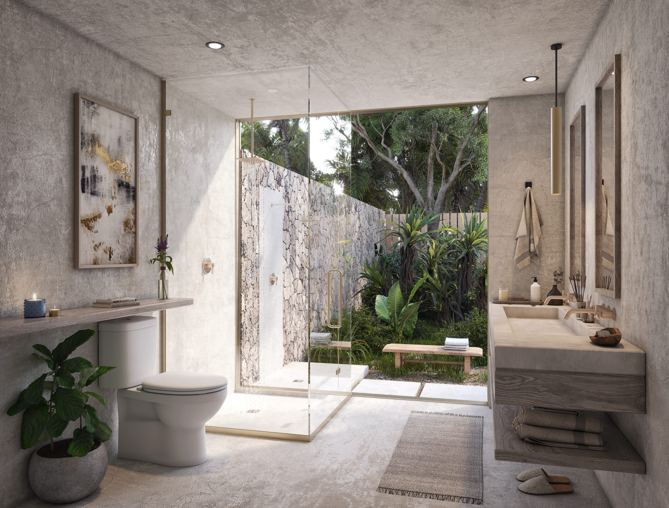 Cada villa es una combinación armoniosa de diseño con elementos naturales y lujo moderno. Elementos de tierra, agua, aire y fuego se incorporan a la arquitectura y los espacios habitables.